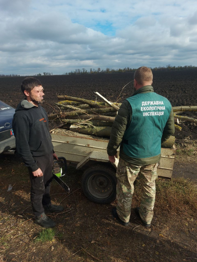 Під час затримання у браконьєра виявили бензопилу, якою він пиляв дерева. Також при ньому зафіксували машину з повним причепом деревини, яку чоловік встиг заготовити.