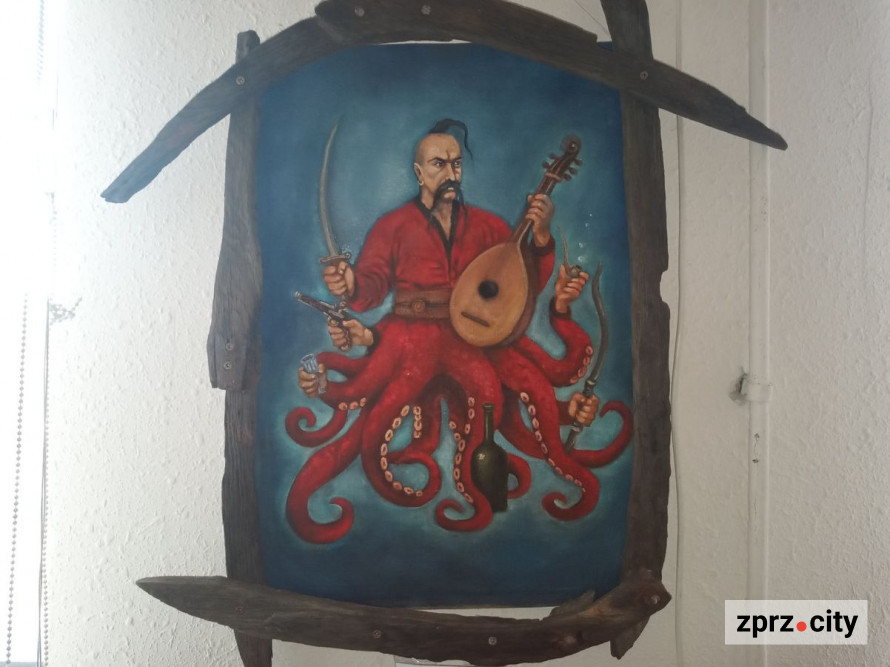 "Хлопці з підрозділу "Кракен" замовили картину. Я запропонувала такий варіант, напівлюдини-напівкракена, об'єднавши образи Мамая і міфічної істоти. Картина мені так сподобалась, що я попросила залишити її собі (ця робота на виставці), а хлопцям написати нову. Вчора закінчила другого "Кракена", а він ще краще. Мабуть, віддам першого", - розповіла zprz.city Яна Ясунас.