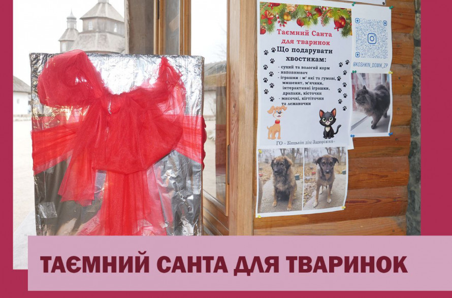 У Запоріжжі розпочалася незвична благодійна ініціатива – «Таємний Санта для тваринок». Акцію організувала громадська організація «Кицькин дім Запоріжжя», а підтримав її Національний заповідник «Хортиця». Про це повідомили у пресслужбі заповідника.
