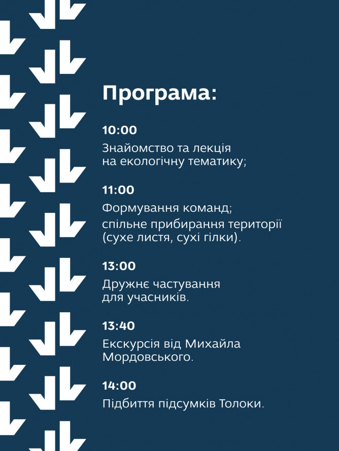11:00 - формування команд; спільне прибирання території (сухе листя, сухі гілки)
