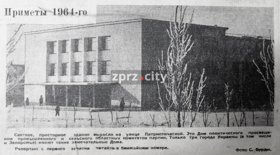 Тільки три міста України мали "такі чудові" Будинки політпросвіти (Газета "Индустриальное Запорожье", 1964 рік).