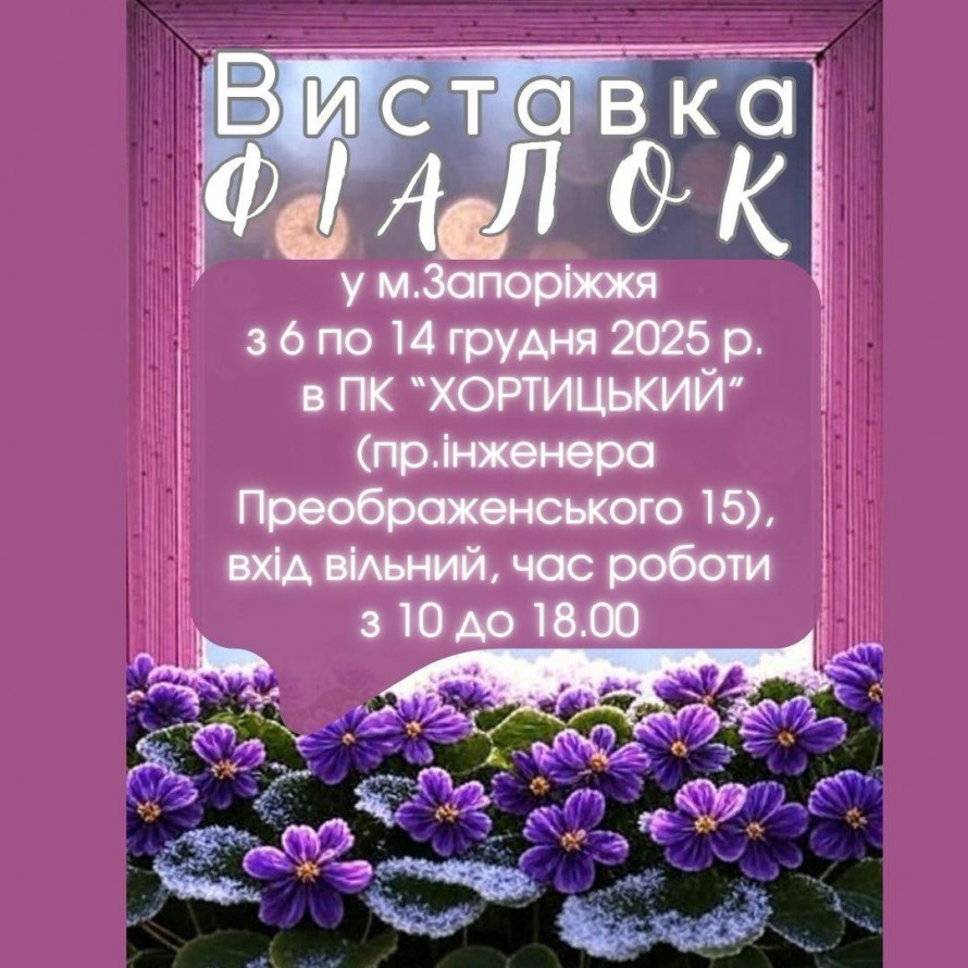 - 6-14 грудня з 10.00 до 18.00 - виставка живих фіалок, у ЦКП "Хортицький" (просп. Преображенського, 15).