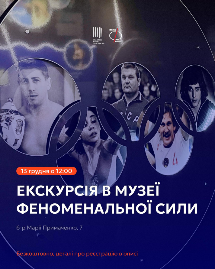 - 13 грудня о 12.00 - екскурсія в Музеї феноменальної сили. Безкоштовно, за попередньою реєстрацію.