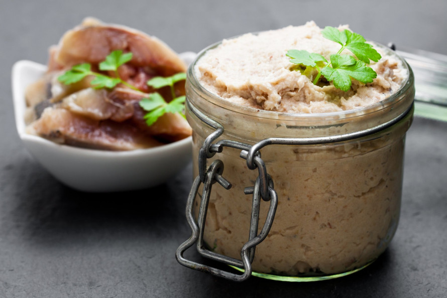 Оселедець очищаємо від шкіри та кісток, за допомогою ножа подрібнюємо у фарш.