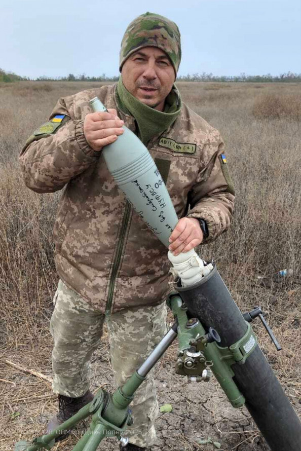 Бойового досвіду спочатку не було — тож починав із найпростішого: підносив міни, був номером обслуги. Згодом виріс до навідника, а потім — до командира мінометного розрахунку. Перед виходами завжди підписував боєприпаси: «Оркам від співробітників НУФВСУ».