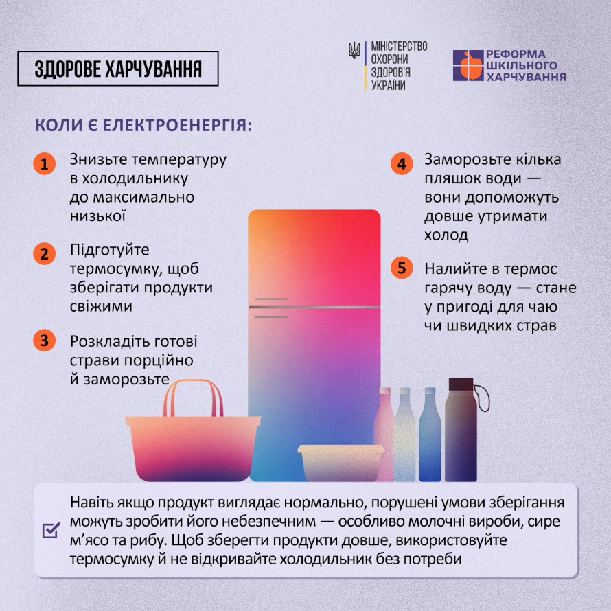 У МОЗ надали поради щодо здорового харчування в умовах постійного відключення електрики за графіками