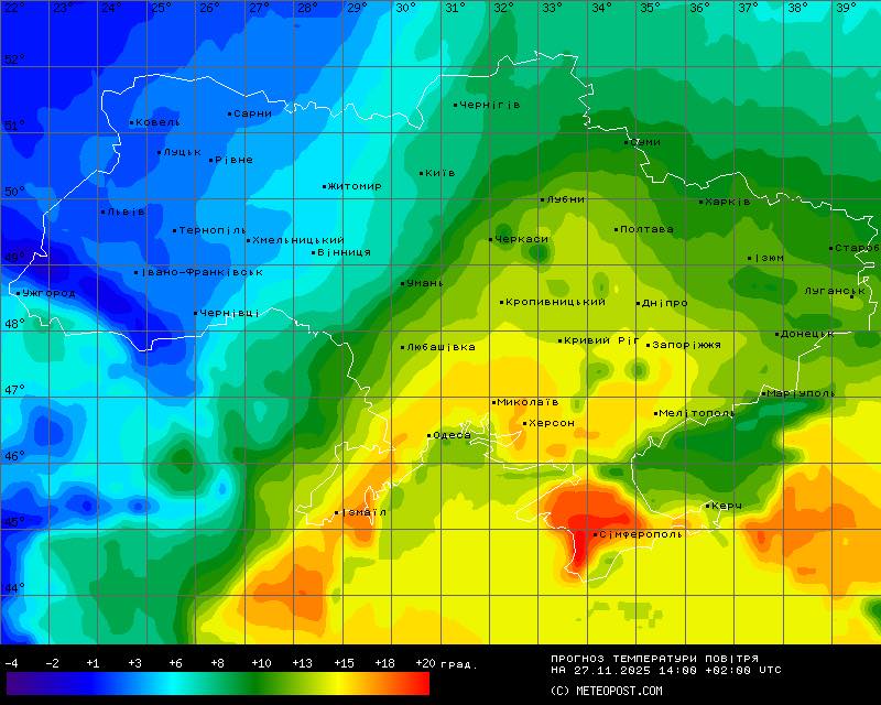 День обіцяє бути трохи теплішим: синоптики прогнозують +12…+14°C. У порівнянні з кліматичною нормою для кінця листопада це досить високі показники, тож осінь затримується ще на крок від зими.