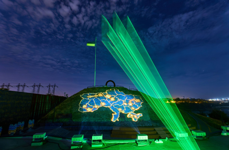 До Дня міста на Кургані Єдності на Хортиці відкрили унікальну світлову інсталяцію "Хроніки Сили", створену українським митцем і дизайнером світла Миколою Каблукою. За словами автора, головна ідея проєкту — показати, що світло завжди перемагає темряву.