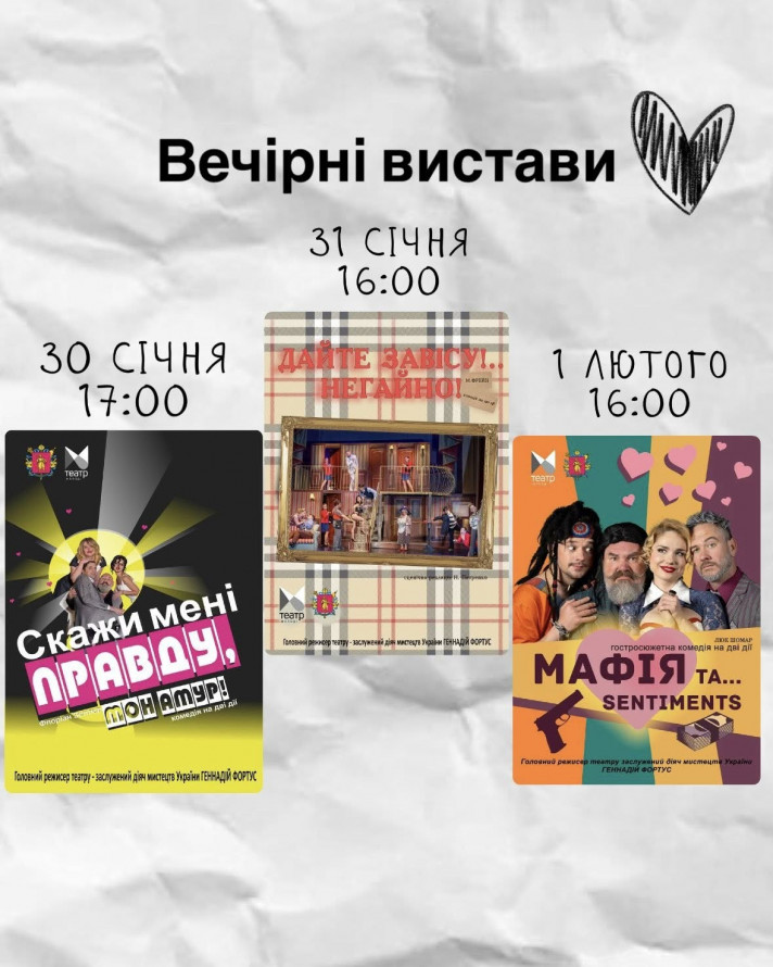 - 30 січня о 17.00 - комедія "Скажи мені правду, мон амур!"