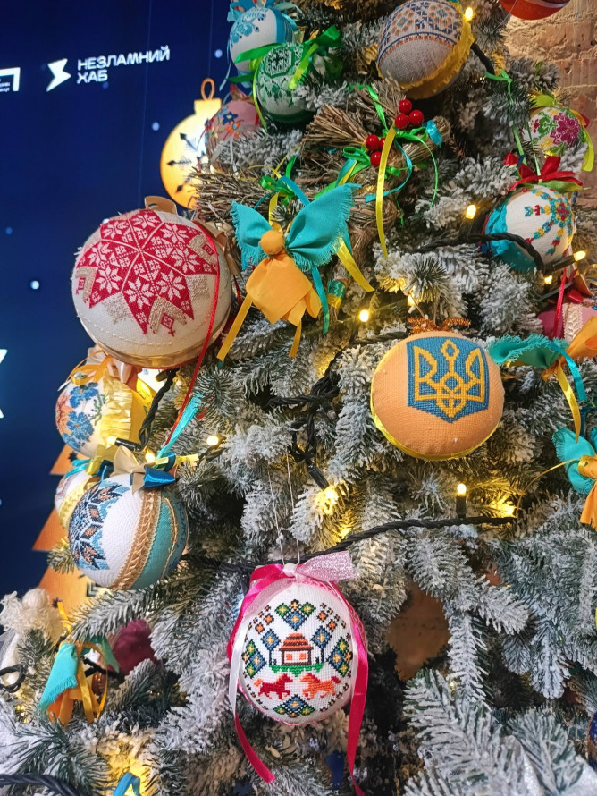 До речі, перед ЦКП "Орбіта" влаштували красиву святкову зону. Незламний хаб в "Орбіті" теж святково прикрашений. Зокрема, там є ялинка, яку прикрасили унікальними вишитими вручну кульками роботи майстринь ГО "Запорозькі берегині".