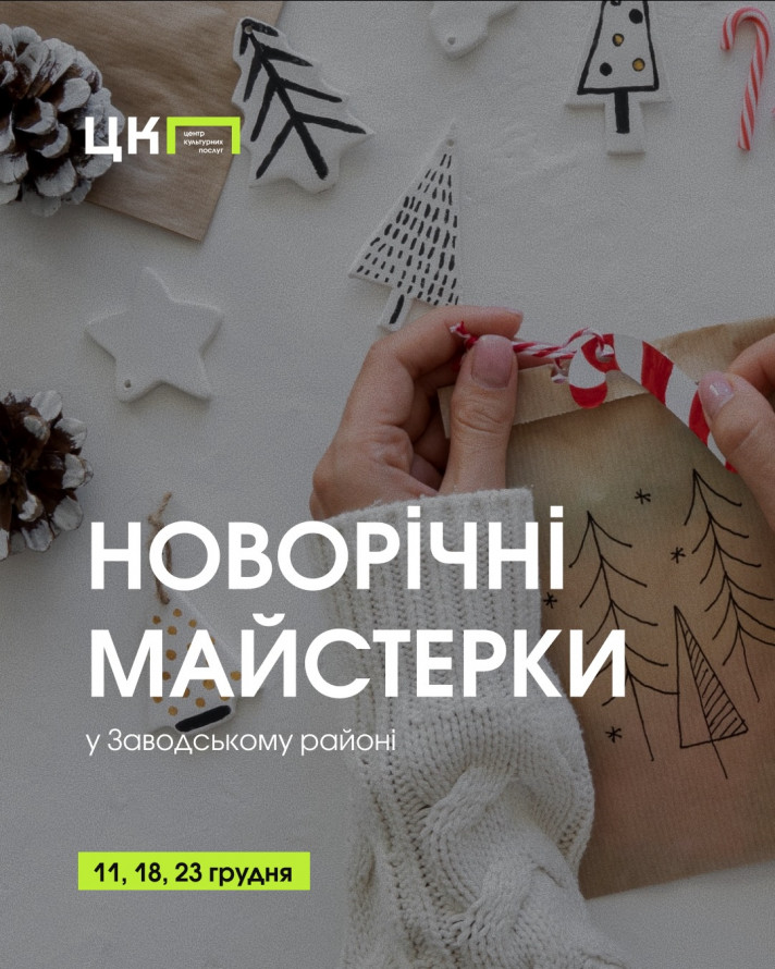 - 20 грудня о 14.00 - майстер-клас "Різдвяна майстерня" (для дітей 7-16 років), ІІ укриття ЦКП "Орбіта" (вул. Вячеслава Зайцева, 9).