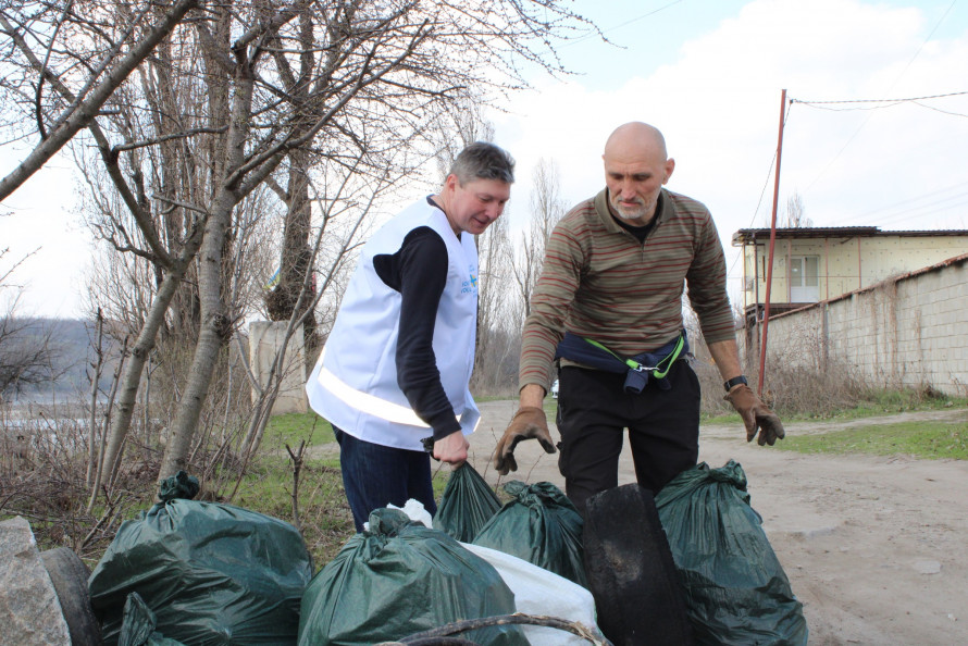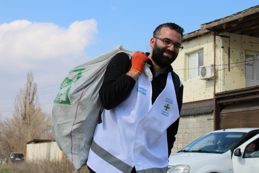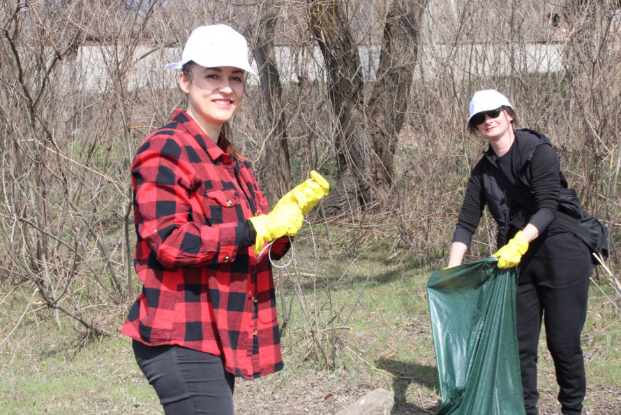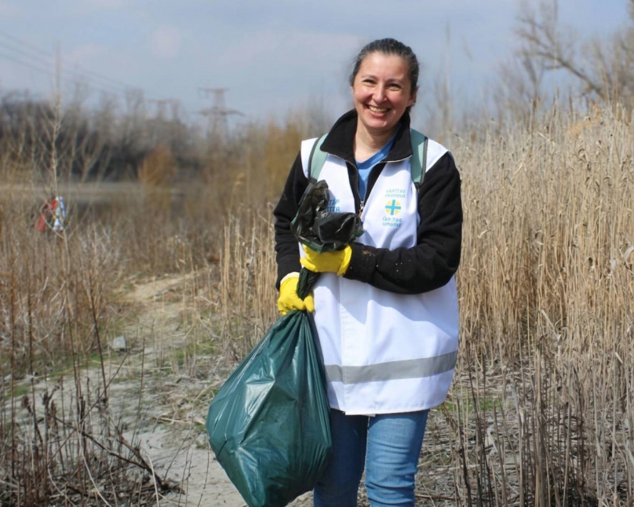 Разом із нею береги Дніпра прибирали студенти, родини з маленькими дітьми, фахівці та волонтери «Карітасу Запоріжжя».