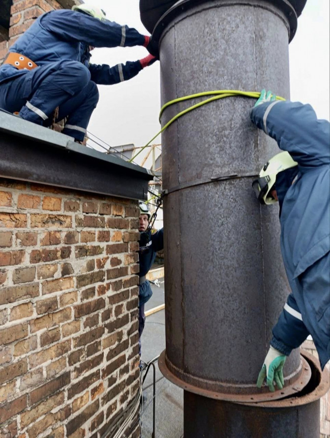Комісія з техногенно-екологічної безпеки та надзвичайних ситуацій розглянула це питання та прийняла рішення про проведення термінових робіт. Завдання виявилося непростим, адже конструкція розташовувалася високо, біля самого даху багатоповерхівки.