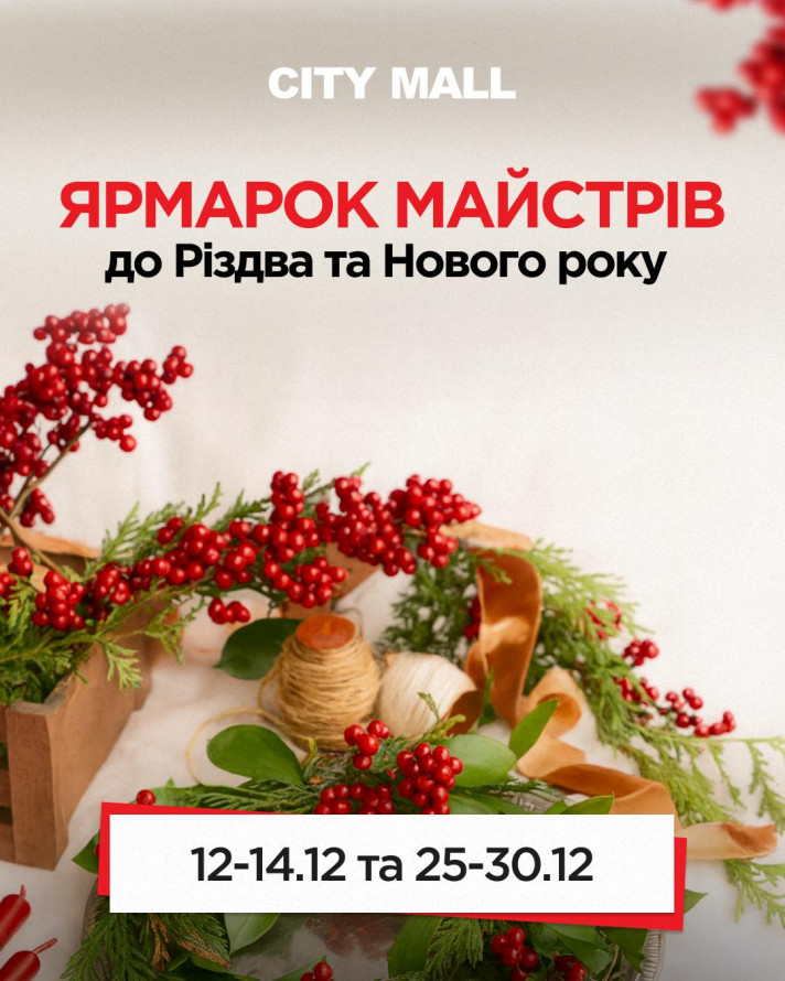 - 25-30 грудня, з 10.00 до 21.00 - новорічний ярмарок крафтових товарів у ТРК "CITY MALL" (вул. Запорізька, 1Б). Серед товарів - шкіряні вироби, прикраси, мило, свічки, текстильні ляльки, новорічний декор та аксесуари, вишиванки, вино, мед, кондитерські вироби, сир, копчення та інше.