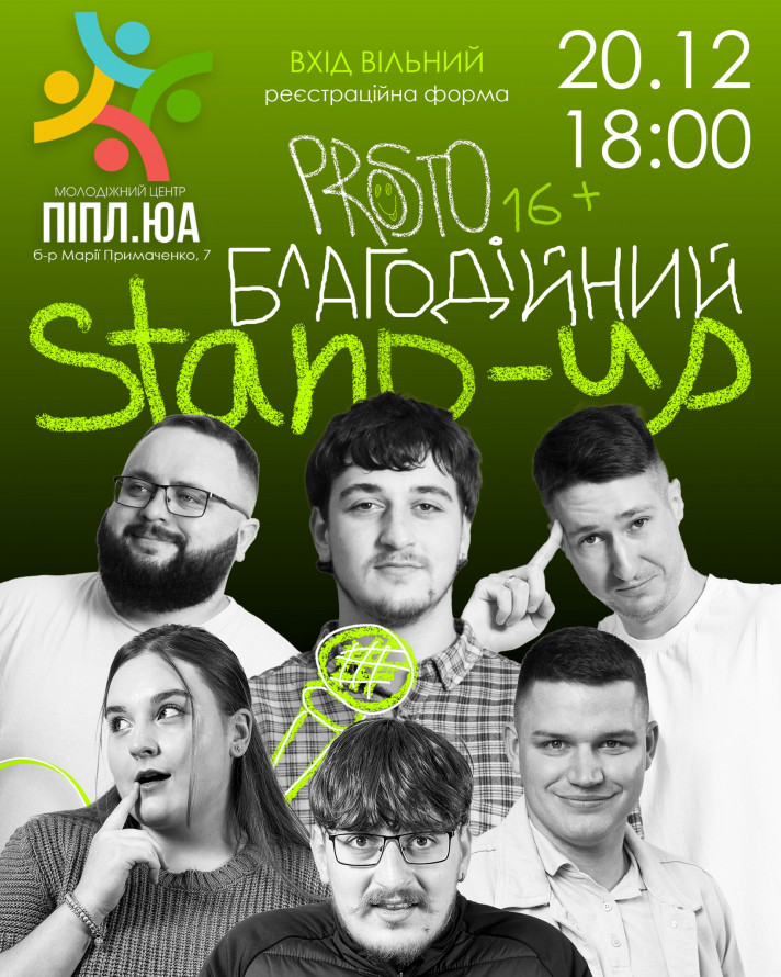 - 20 грудня о 18.00 - благодійний стендав-вечір у молодіжному центрі "Піпл.юа" (б. Марії Приймаченко 7). Безкоштовно, але обов'язкова попередня реєстрація.