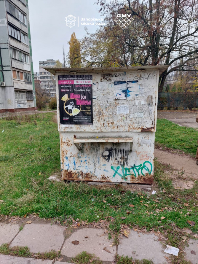 Також на території громади днями прибрали металевий МАФ. Кіоск Знаходився у Хортицькому районі, на вулиці Героїв 93-ї бригади.