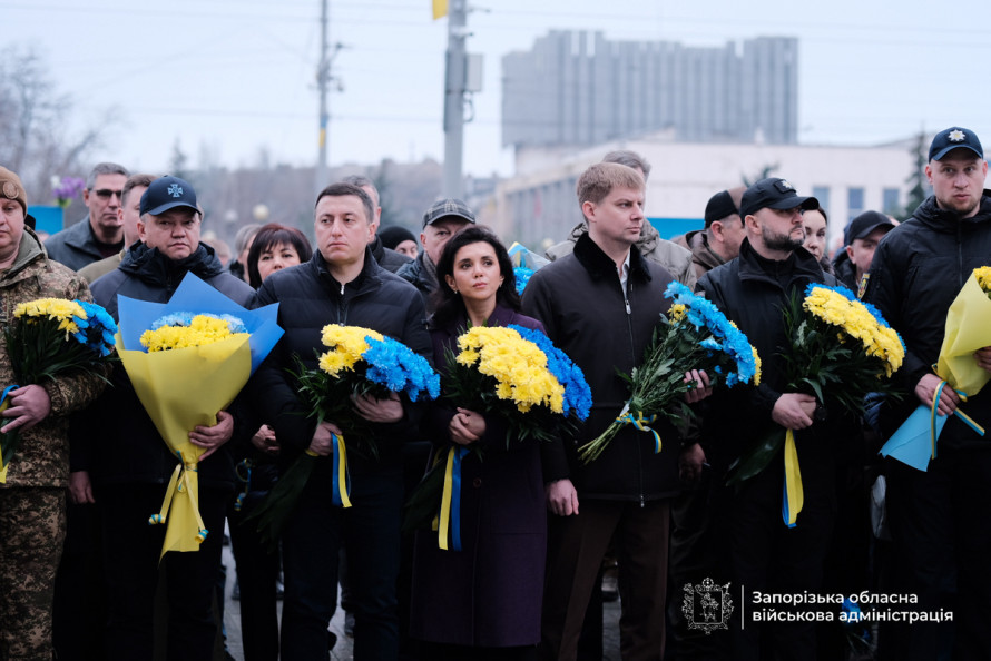 На церемонії були заступник голови Запорізької обласної державної адміністрації Михайло Семікін, секретар Запорізької міської ради Регіна Харченко, представники Сил оборони України, Національної поліції та рятувальники. Усі присутні вшанували пам'ять загиблих Героїв хвилиною мовчання. До меморіалу поклали синьо-жовті квіти та запалили лампадки.