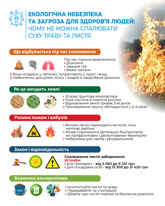 Безпечніше й корисніше — компостувати рослинні рештки або передавати їх на утилізацію. Це допоможе зберегти чисте повітря, родючі ґрунти та здоров’я кожного з нас.