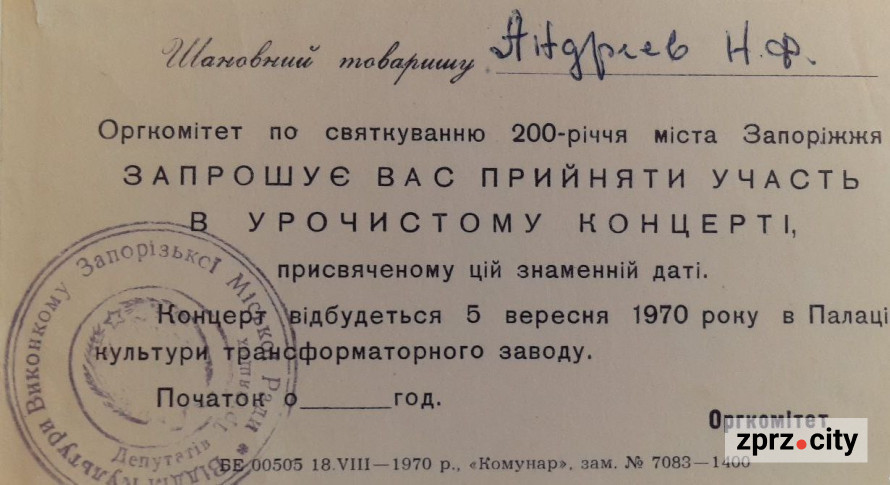 Окремий концерт для обраних та урочисте засідання провели в головному на той час палаці культури Запоріжжя – трансформаторного заводу.