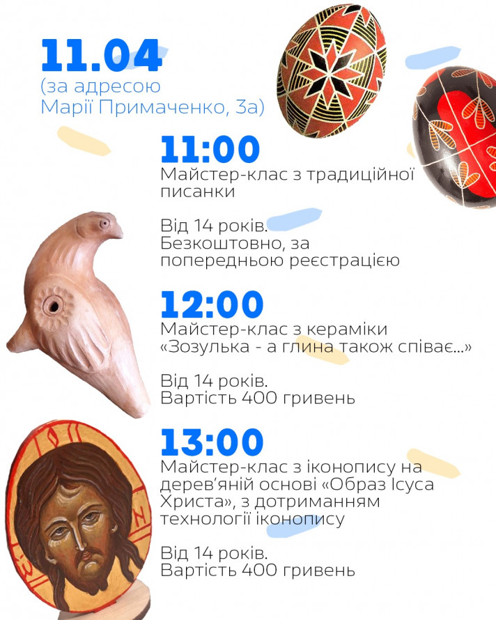 Писанкарство (бул. М. Примаченко, 3А) за посиланням: https://forms.gle/gAFAsCMuPAronoVd7