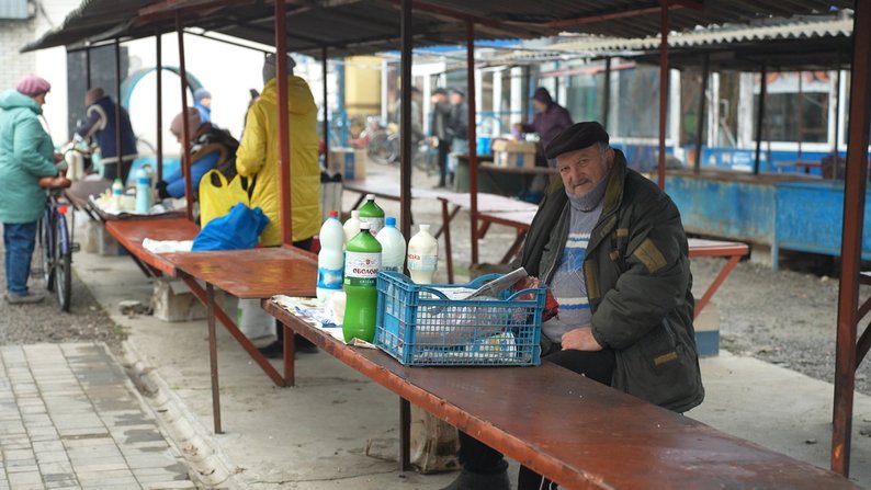 Віктор на місцевому ринку продає власну молочну продукцію. Каже, що хоче, аби ті, хто залишається в селі, мали необхідні продукти: