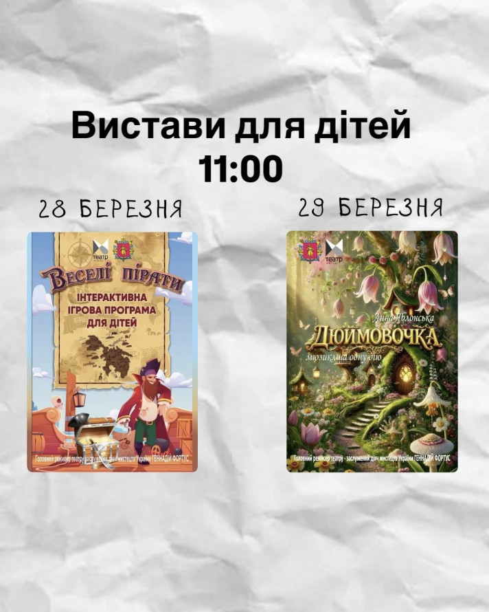 - 29 березня об 11.00 - прем'єра сезону, мюзикл на одну дію "Дюймовочка".