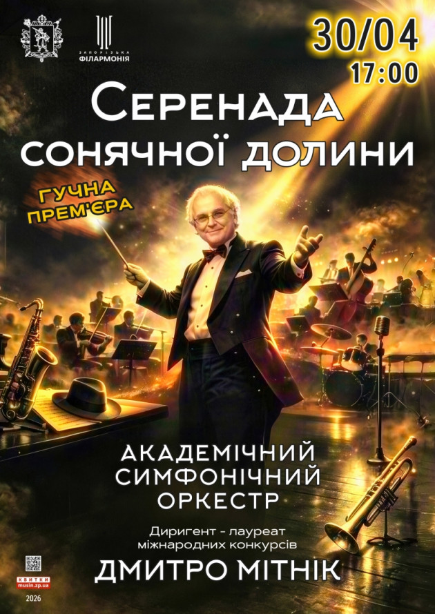 - 30 квітня о 17.00 - дуже очікувана прем’єра концерту «Серенада сонячної долини» академічного симфонічного оркестру під керуванням диригента, лауреата міжнародних конкурсів Дмитра Мітнік.