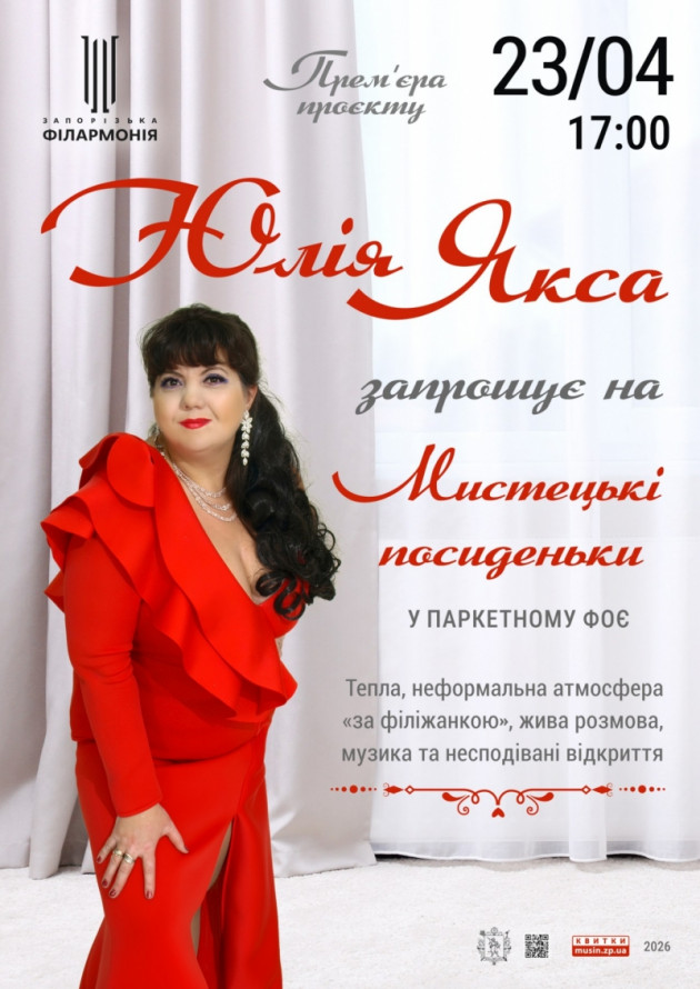 Це не тільки прем'єра програми, а й прем'єра нового проєкту філармонії «Мистецькі посиденьки». Не концерт і не класичне інтерв’ю, а жива бесіда, в якій глядач стає учасником, а артист — другом, співрозмовником, однодумцем. Кожна зустріч проходитиме в новій локації й матиме свій унікальний настрій. Центральна фігура події - харизматична, талановита і багатогранна Юлія Якса, улюблениця справжніх поціновувачів вишуканого мистецтва.