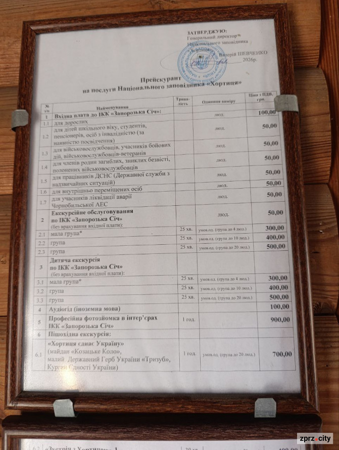 Історико-культурний комплекс "Запорозька Січ" Національного заповідника "Хортиця" працює з середи по неділю з 9.00. до 16.00, каса до 15.30. Вихідні - понеділок, вівторок.