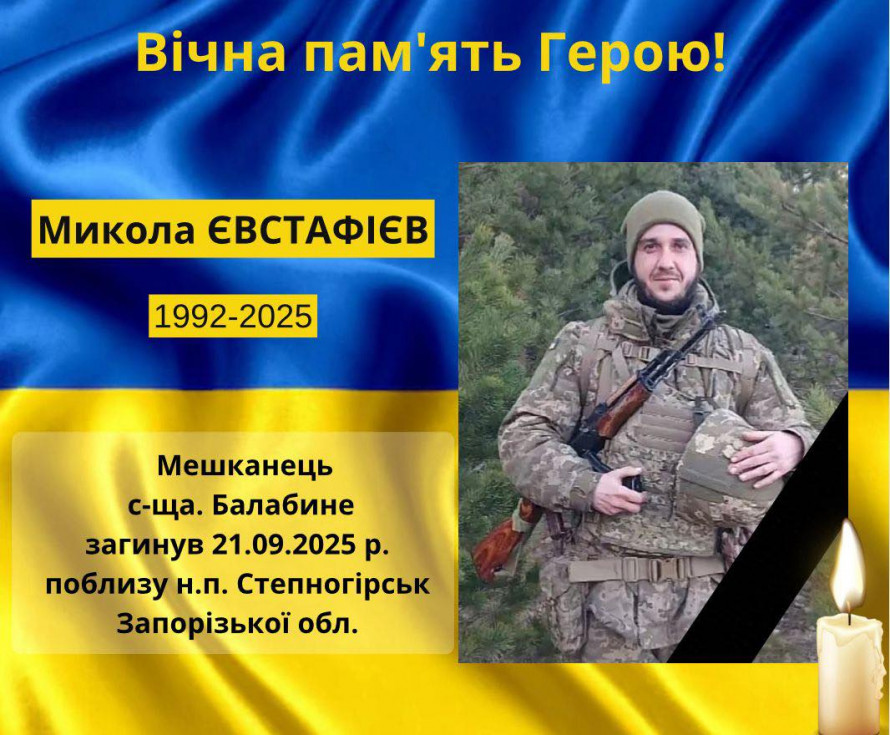 Він захищав Україну та свою рідну громаду. 21 вересня 2025 року Євстафієв Микола Васильович загинув у бою поблизу Степногірська Запорізької області, виявивши мужність і незламність.