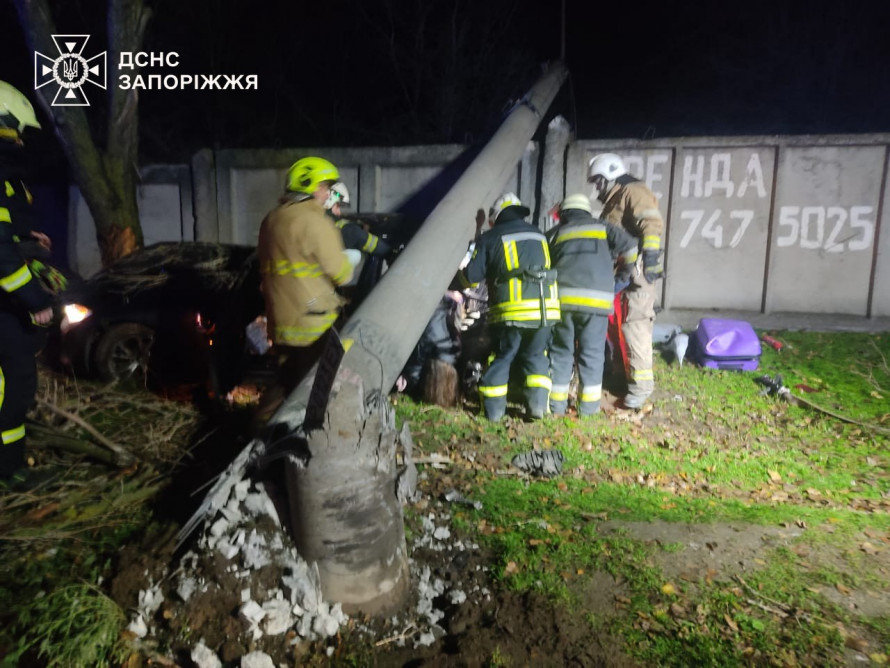 Водій авто врізався в електроопору, рятувальники деблокували чотирьох затиснутих пасажирів
