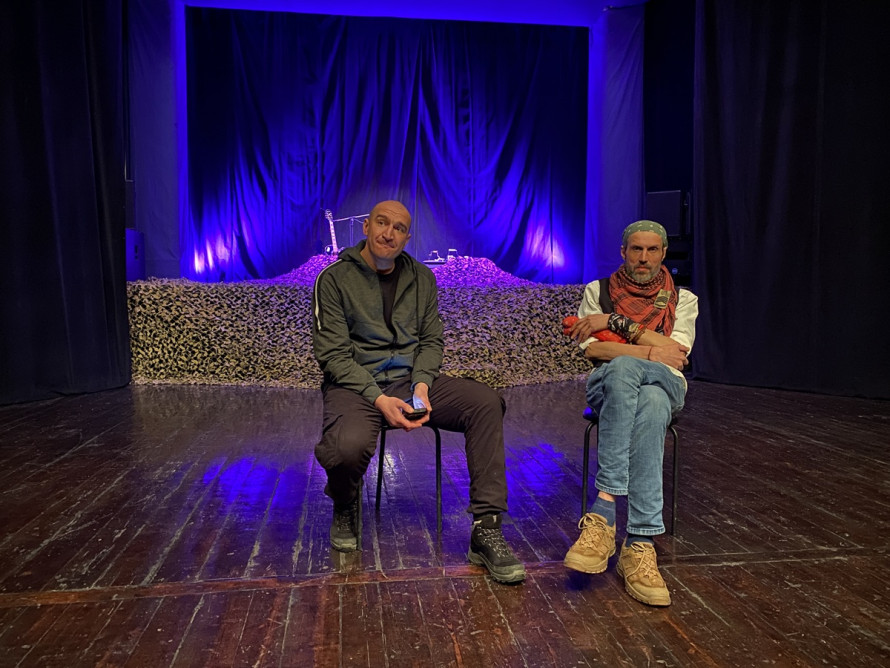 Сергій Собержанський — актор, співзасновник Мистецького центру ветеранів і також військовослужбовець. До повномасштабної війни він працював у запорізькому театрі Магара. У цій виставі він став тим, хто тримає баланс між сценою і залом, допомагає вибудувати діалог і не загубити сенси.