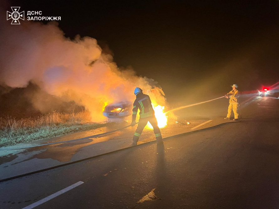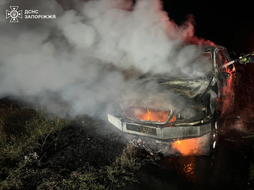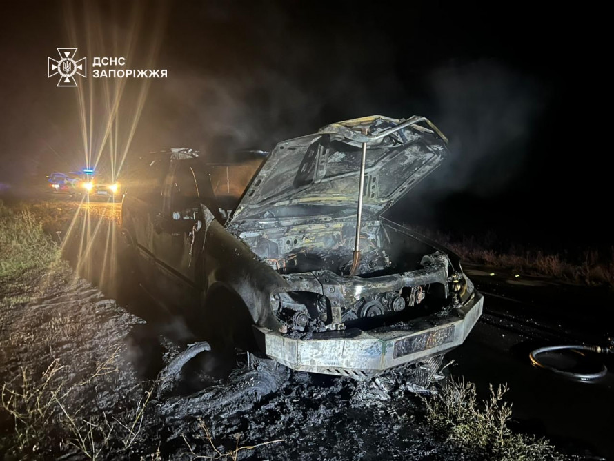 Увечері 12 жовтня поблизу одного з населених пунктів Запорізького району загорівся легковий автомобіль. О 19:25 рятувальники отримали повідомлення про пожежу на дорозі.