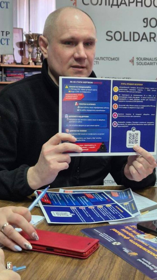 Про найпопулярніші серед злочинців способи обману, психологічні маніпуляції та те, як уберегтися від аферистів, розповіли фахівці Центру протидії шахрайствам Головного управління Національної поліції в Запорізькій області Олександр Середа та Оксана Скребець під час зустрічі в регіональному Центрі журналістської солідарності.