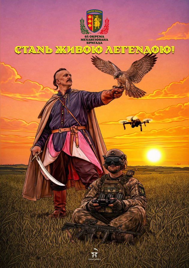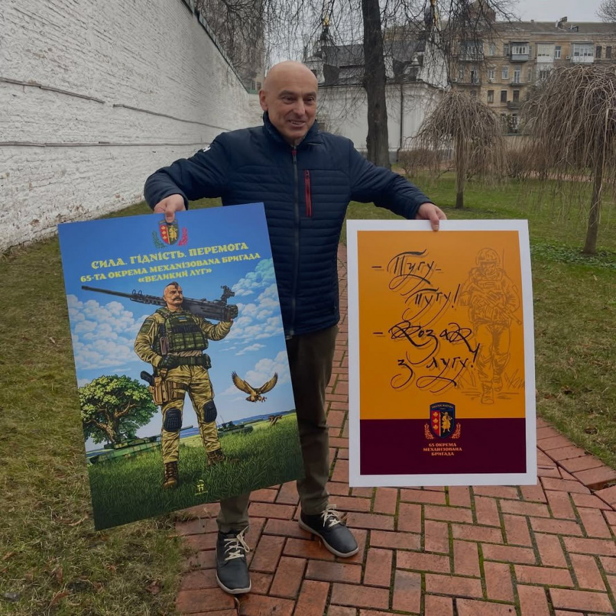 "Для 65 окремої механізованої бригади зробив серію плакатів, буде ще! Великий Луг - батько! Дякую Ігор Захаренко!" - написав на своїй сторінці у фейсбуці Андрій Єрмоленко та опублікував декілька плакатів.