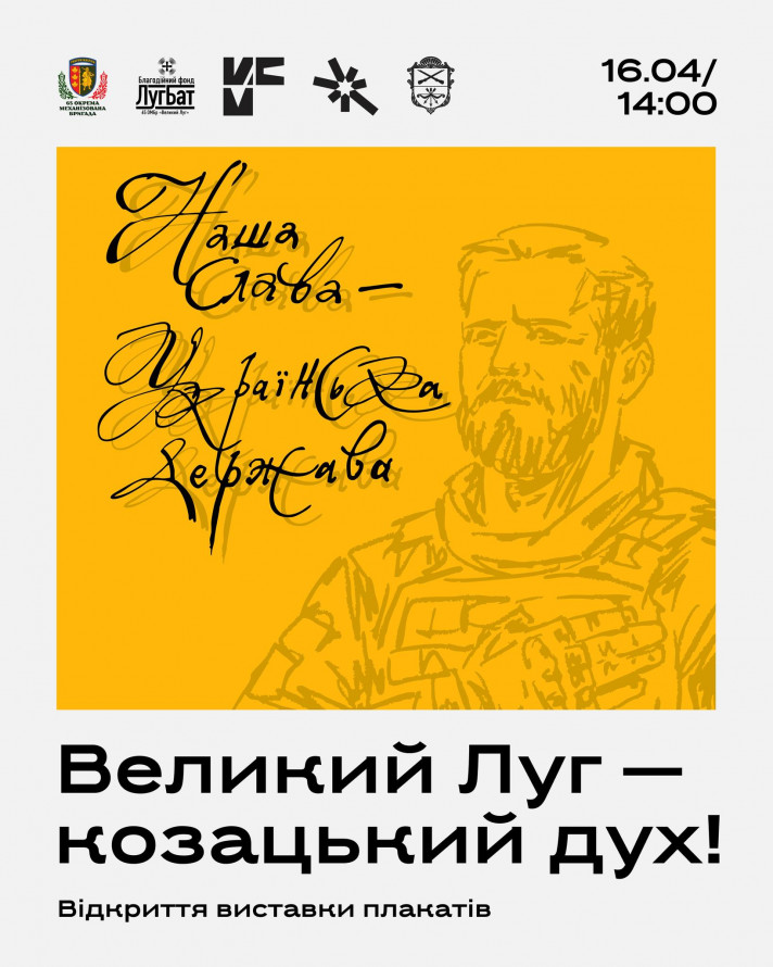 - 16 квітня о 14.00 - відкриття виставки "Великий Луг - козацький дух!" Андрія Єрмоленка, Нікіти Тітова і Богдана Бринського, на бульварі Марії Примаченко.
