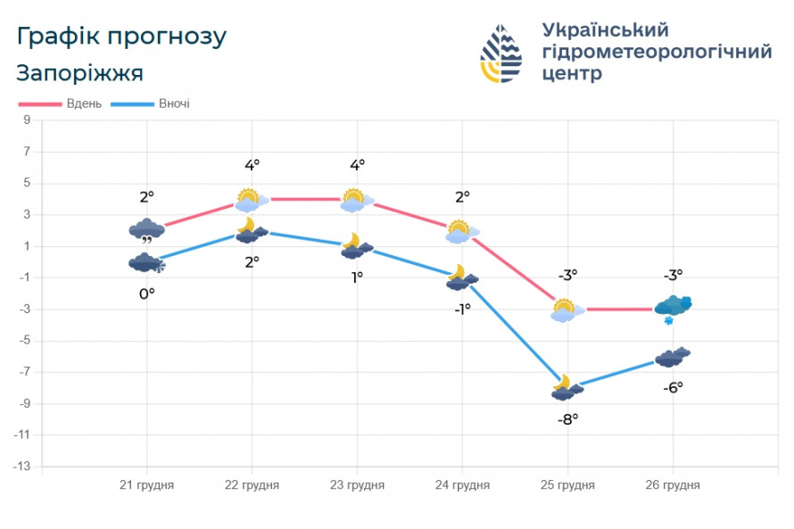 Синоптики розповіли про погоду в Запоріжжі 22, 23 та 24 грудня