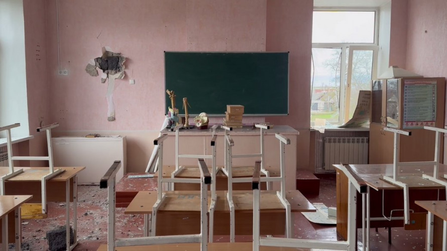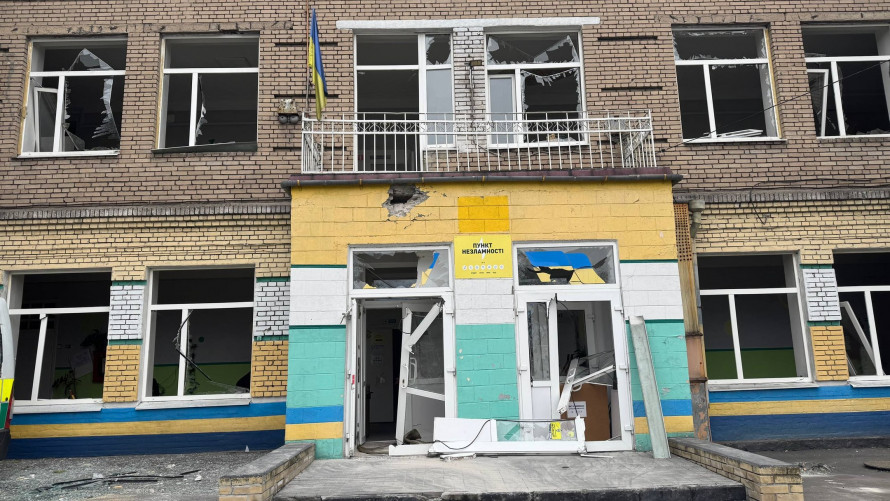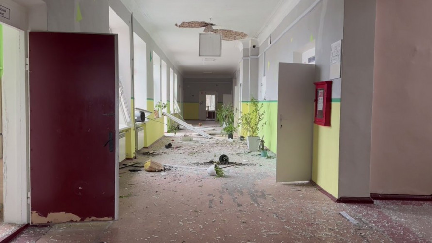 Нині працівники почали прибирати понівечені конструкції — укриття цього закладу орендувала інша школа для навчання, втім зараз учні перебувають на канікулах, розповіла Любов: