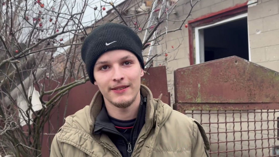 "Ми на ліжку спали, як бабахнуло, вікна посипалися. Лутка на мене впала. Ото швидко встав, вибіг в залу і вже з мамою сховалися. Бачимо другий прильот, але десь далеко, бах. Спочатку приходили до тями, бо була контузія, дзвін у вухах. Потім вийшли, а тут дроти лежать, іскри летять, все в диму. Я спочатку подумав, що саме в будинок прилетіло".