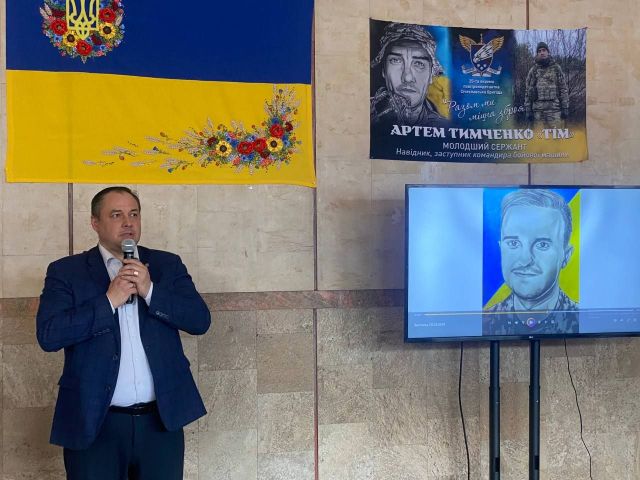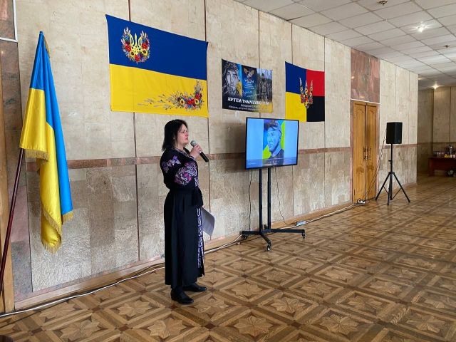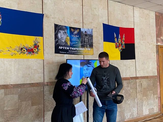 На заході були присутні батько Артема Юрій і брат Денис, який також став на захист країни — як він сказав, «бо було з кого брати приклад». Оксана вручила портрет Артема його батьку.
