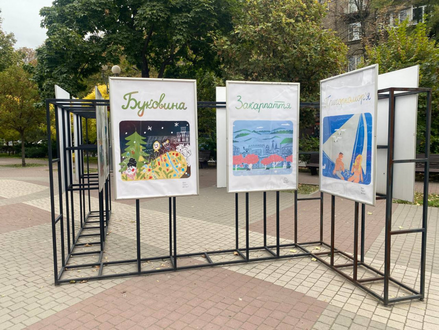 До експозиції увійшли пейзажі, урбан скетчі, плакати з українськими прислів’ями та омажі на відомі картини, створені під час роботи над проєктом.