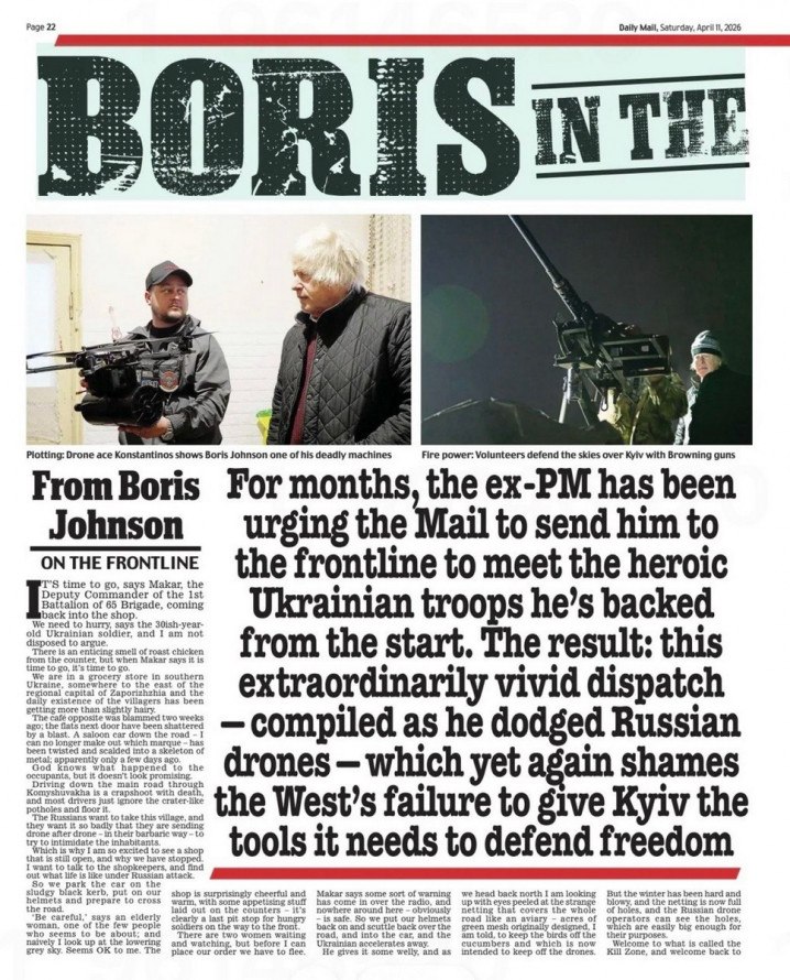 Журналіст розповів, що Борис Джонсон наполегливо просив організувати для нього поїздку безпосередньо на передову. У підсумку він відвідав позиції українських військових, зокрема 65-ї бригади на Запорізькому напрямку.
