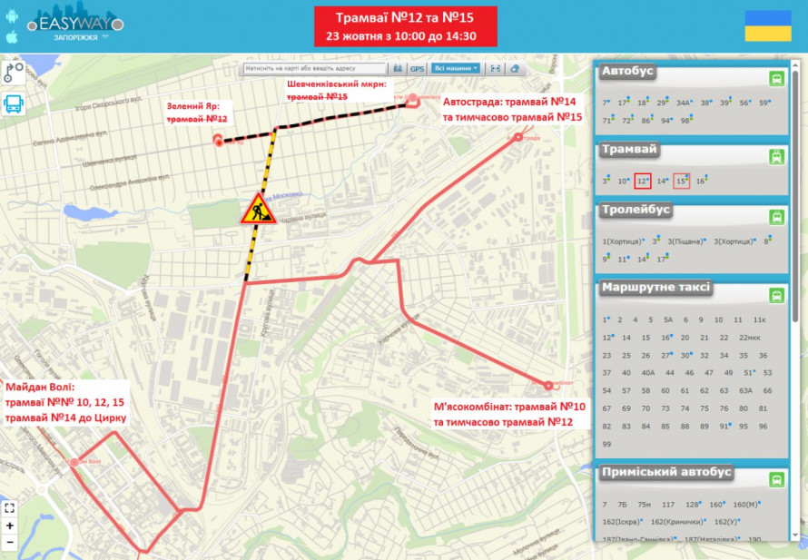 Запорізька міська рада попередила мешканців міста про тимчасові зміни у роботі електротранспорту. 23 жовтня два трамвайні маршрути працюватимуть не у повному обсязі.