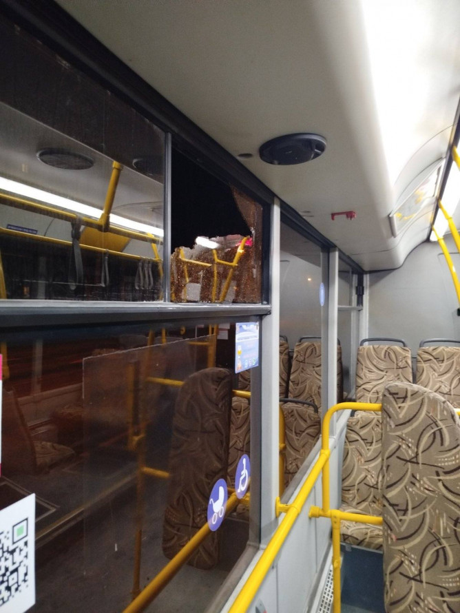 «Учора їхали автобусом близько дев’ятої вечора. На Бабурці, в районі зупинки Універсам, у транспорт кинули камінь просто під час руху. Добре, що він влучив не в скло, а в металеву бокову частину».