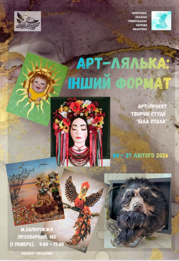 Виставка працюватиме у Запорізькій обласній універсальній науковій бібліотеці за розкладом бібліотеки, з понеділка по суботу з 9.00 до 17.00 - по 27 лютого.