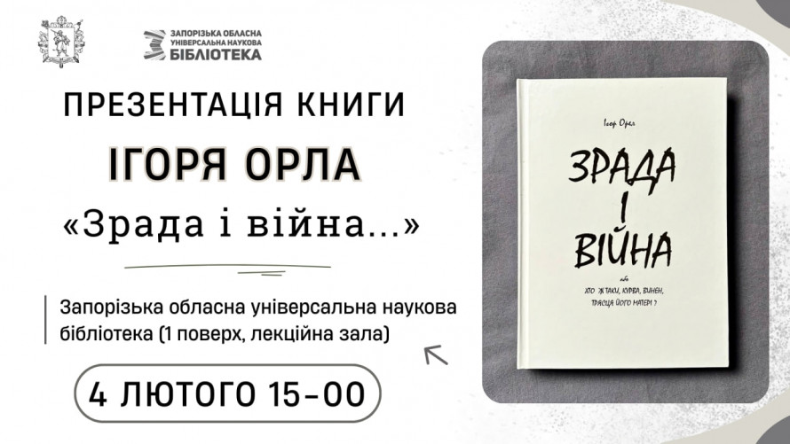 - 4 лютого о 15.00 - презентація книги Ігоря Орла "Зрада і війна...".