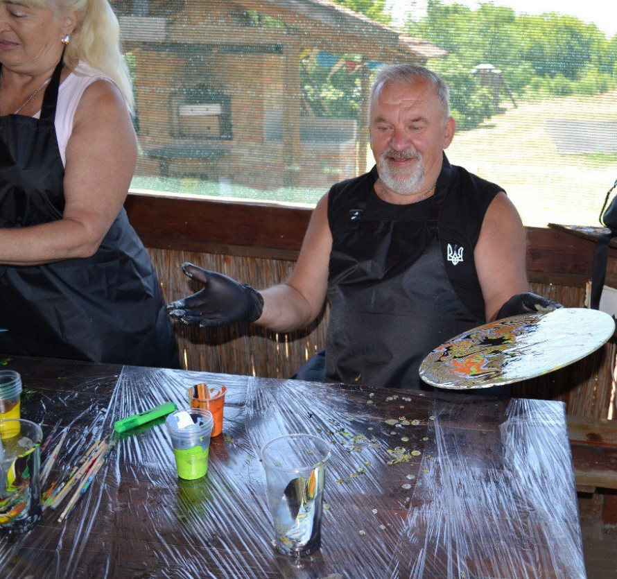 «Найяскравіший спогад – як ми малювали. Картини, які ми робили з дружиною, ми навіть повісили в альтанці на дачі. Багато загалом моментів, що запам’яталися. І барабани, і спілкування, і руханки… Ми досі повторюємо ці вправи вдома», – посміхається ветеран.