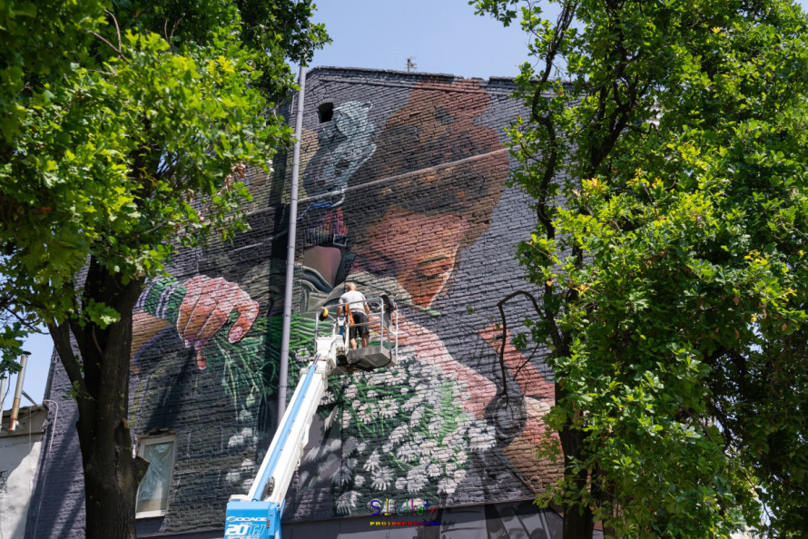 Для втілення проєкту запросили двох талановитих українських художників. Ескіз розробив відомий київський мураліст Саша Корбан, а втілив у життя запорізький майстер графіті Денис Ліптон.