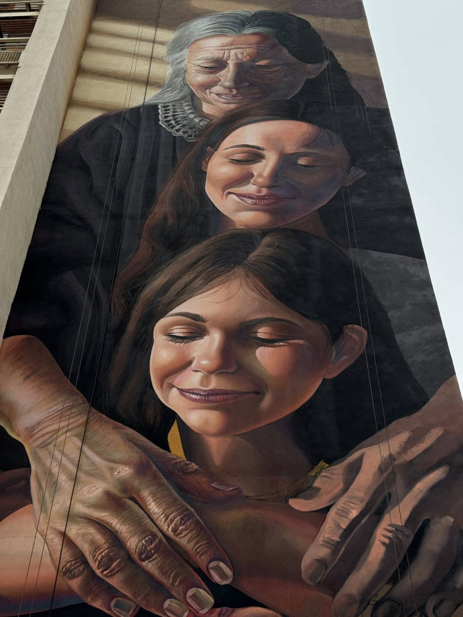 Зображення на стіні має глибоке символічне значення. Воно показує нерозривний зв'язок між поколіннями — турботу, тепло та любов, що передаються від бабусі до матері, а від матері до дитини.