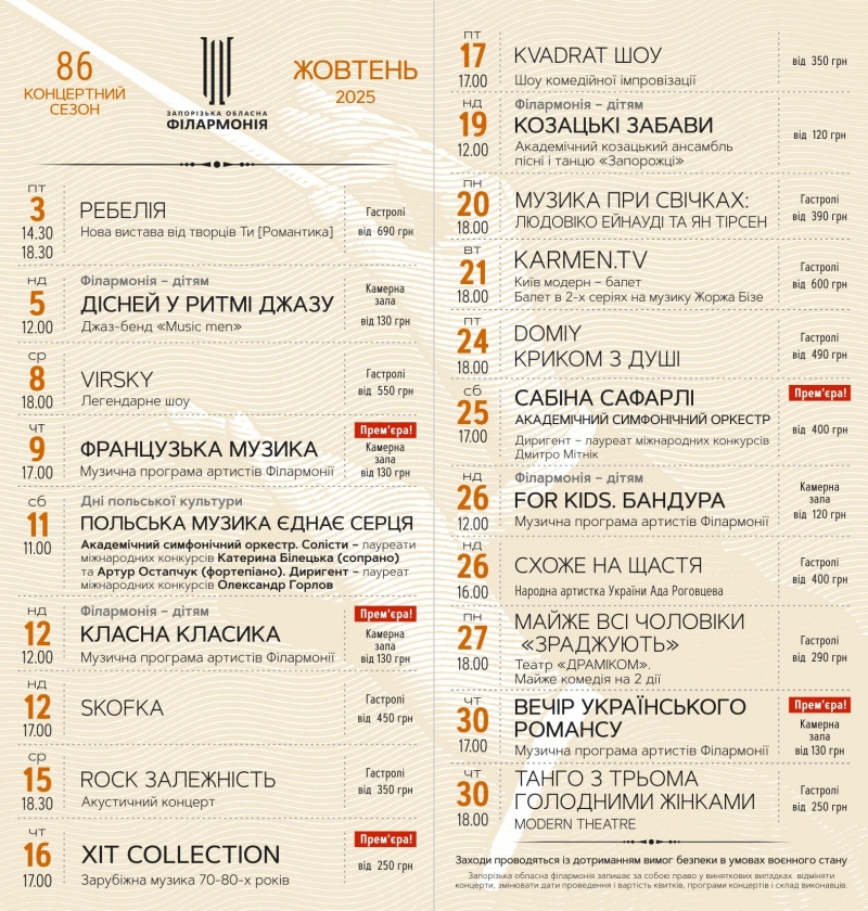 Що ще можна відвідати у філармонії у жовтні - дивіться на афіші нижче.